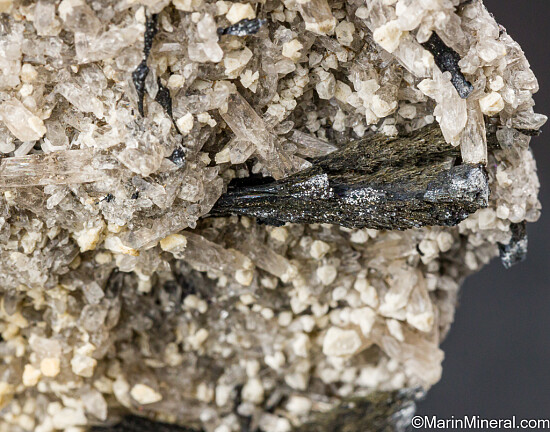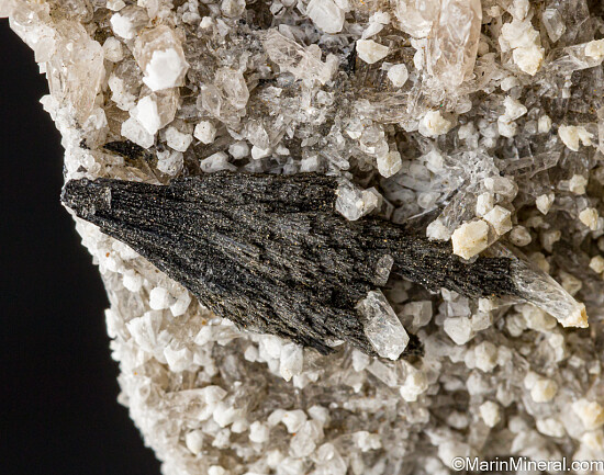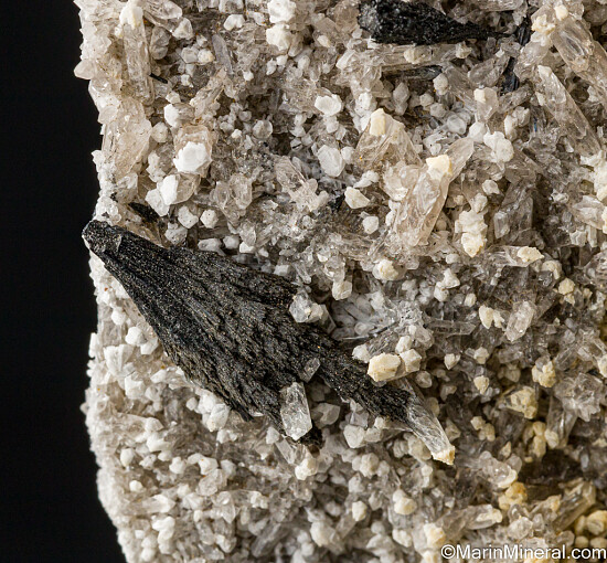 Thin, flat matrix composed of clear Selenite crystals with atttached fan-shaped crystals of Schorl (Tourmaline). An unusual combination of minerals.