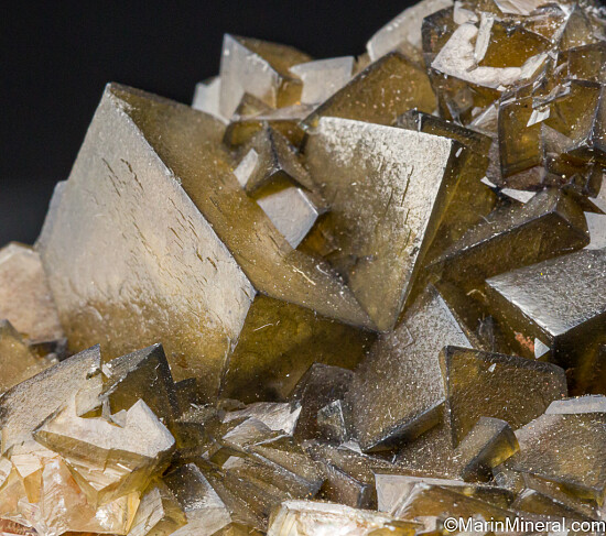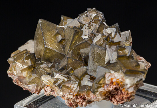 Sharp golden crystals of cadmium rich Smithsonite. A beautiful piece with well formed, distinct crystals that are highly translucent and show a deep golden color especially when backlit. Undamaged specimen with crystals to 1.3cm in size.