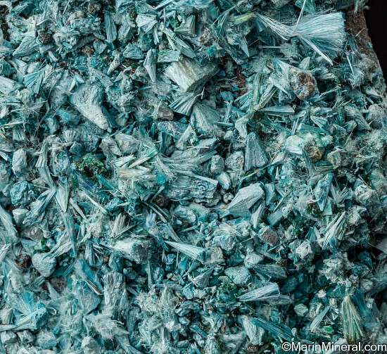Fibrous crystal clusters of sky blue Plancheite covering the entire front display face. This is a very rich example of the species recently released from the Cannon collection with lots of color to brighten up any display case. Valued at $250.