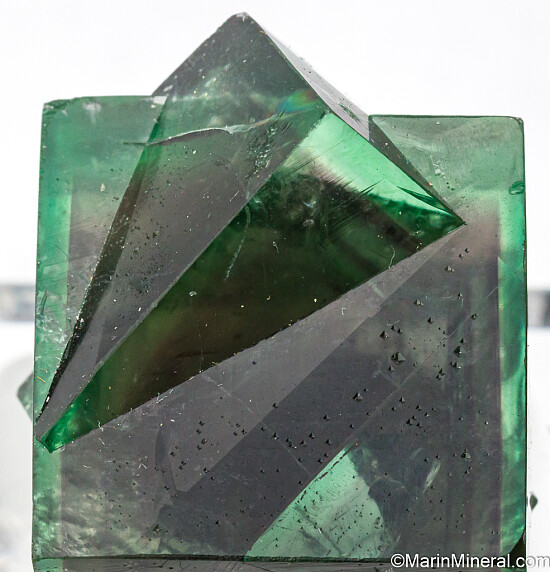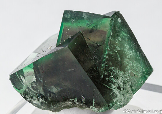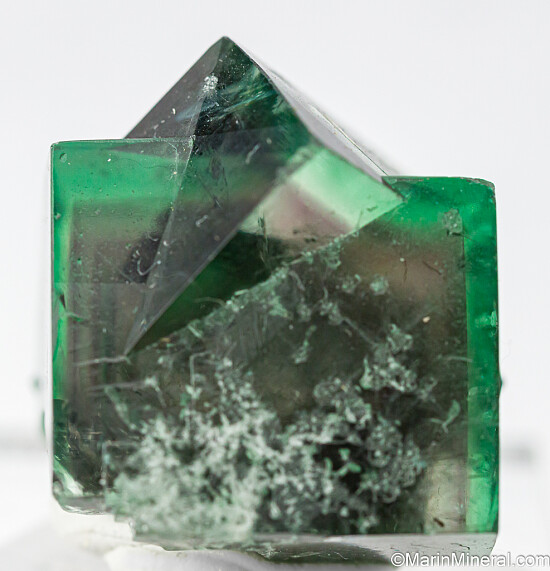Fine quality intergrown pair of Fluorite crystals from England. The crystals are green with an internal purple phantom. Undamaged and highly transparent, this is a top thumbnail recently released from a private collection. Even better than photos and valued at $300.