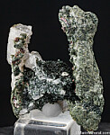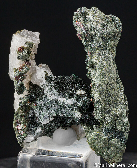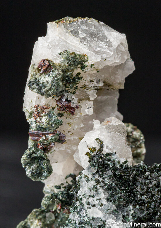 Dark green Chlorite and red Rutile crystals. Collected from boulders near a small hydroelectric dam. Ex. Tim Sherburn collection.