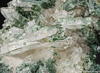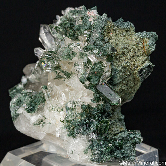 Bright and showy specimen of transparent Quartz crystals with coatings and inclusions of green Chlorite (analyzed as Chamosite). Specimen has individual crystals to 3.5cm. Ex. Tim Sherburn collection.