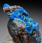 Bright 'electric' blue Papagoite in seams and covering areas of a rock matrix. This has good crystals (!) in areas. From the type locality for Papagoite which was discovered in Ajo in 1960. A rare and hard to find specimen.