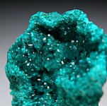 Vug in solid Dioptase lined with Dioptase crystals. Lots of color and sparkle with the largest crystal approximately 3mm in size.