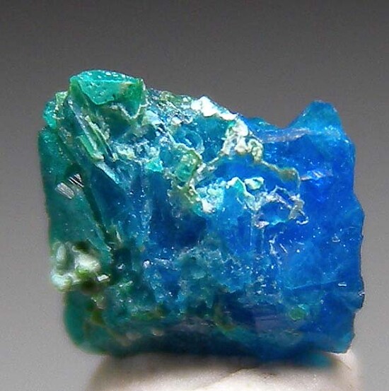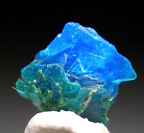 Three loose crystals of Liroconite (only the largest pictured). Liroconite is a rare copper species with the best specimens found at this mine, which is also the type locality for the species. Wheal Gorland began operation in 1792 and the best Liroconite specimens were found in the mid 1800s. The combination of rarity and beauty keep these in high demand and they are only rarely available for sale, usually when an old collection is recycled. Small but rare (the other 2 crystals are 3mm).