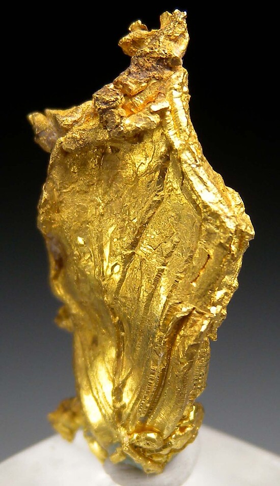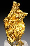 Wide, thick crystal of Gold showing a a broad, flat face on the front with clusters of smaller crystals attached to the backside. Weighs 3.26 grams.