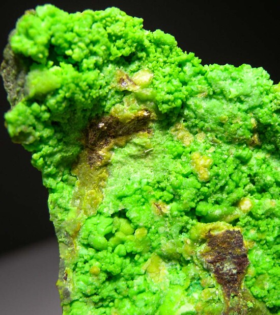 Vivid green Gaspeite with at least one area of micro, darker green Widgiemoolthaite on matrix. Rare and colorful specimen! From MINDAT: 'The 132 North open pit nickel mine has produced the greatest variety of secondary nickel minerals found anywhere in the world to date, some being the best of their species. It is the only locality for Widgiemoolthalite'.