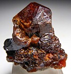 A translucent orange/red Spessartine crystal 1.4cm wide atop a matrix of Galena and Spessartine. Nice old example from an Australia collection that displays well.