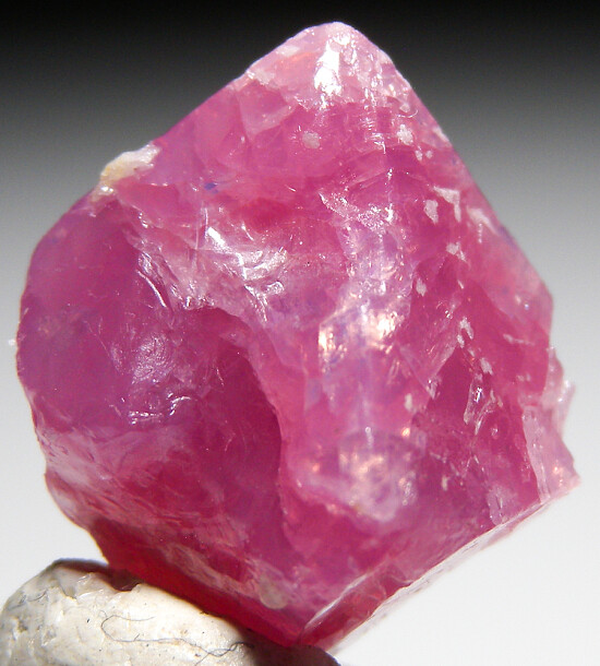 Single octahedral Spinel crystal from Mahenge, famous for it's superb Spinel gemstones. Bubblegum pink in color with good form. Fortunately some good Spinel crystals such as this survive the gemcutters and make it to the specimen market.