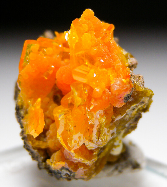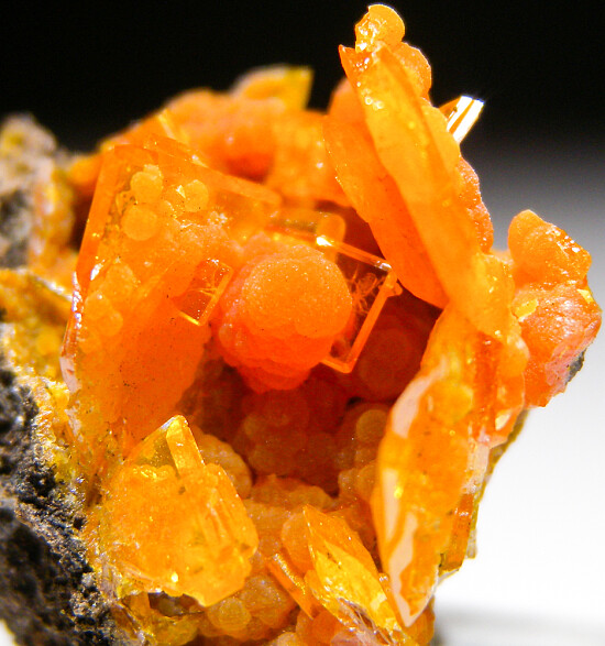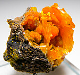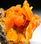 Cute thumbnail of orange Wulfenite blades with globular Mimetite.