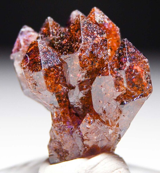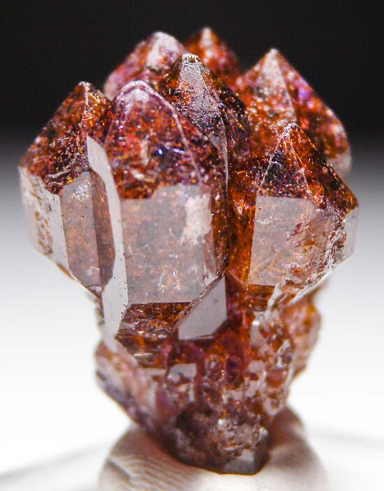 Purple Amethyst scepter crystals, heavily included by black hair-like crystals. Superb undamaged cluster for the find, well crystallized all around, tree-like with all the crystals oriented in the same direction. The camera picked up the red a little more than my eye sees and I find this more purple in hand and much better than photos. These came out a couple years ago and this was high graded from the lot.