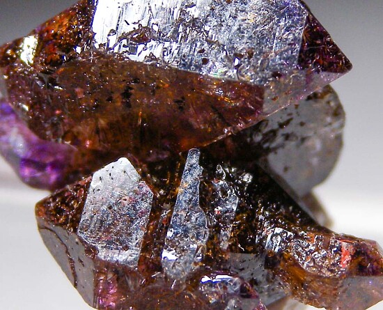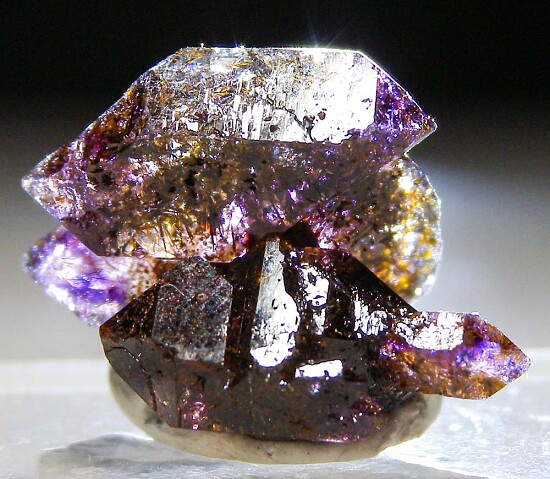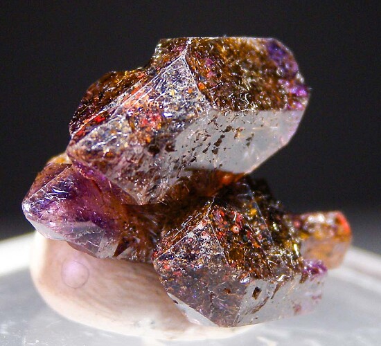 Purple Amethyst scepter crystals, transparent and heavily included by black hair-like crystals. Well crystallized all around, this is an undamaged floater composed of doubly-terminated crystals. The camera picked up the red a little more than my eye sees and I find this more purple in hand and much better than photos. These came out a couple years ago and this was high graded from the lot.