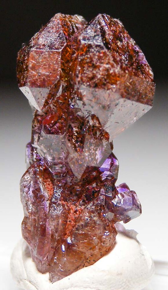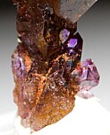 Purple Amethyst scepter crystals, transparent and heavily included by black hair-like crystals. Well crystallized all around and undamaged. The camera picked up the red a little more than my eye sees and I find this more purple in hand and much better than photos. These came out a couple years ago and this was high graded from the lot.