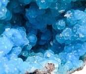 Vug filled with botryoidal blue Hemimorphite with attached crystals of Cerussite. The Hemimorphite is a beautiful translucent blue color!