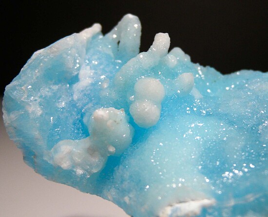 Sparkling sky blue Hemimorphite from Mfouati. A thick 1cm layer of beautiful translucent Hemimorphite. The top surface sparkles and I love the stalactitic growths. Beautiful color!!!! Get one while you can.