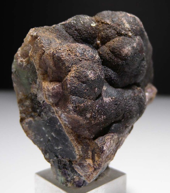 Uncommon botryoidal Fluorite specimen from New Mexico. The Fluorite forms rounded, translucent purple growths over green Fluorite. This specimen was mined in 2014.