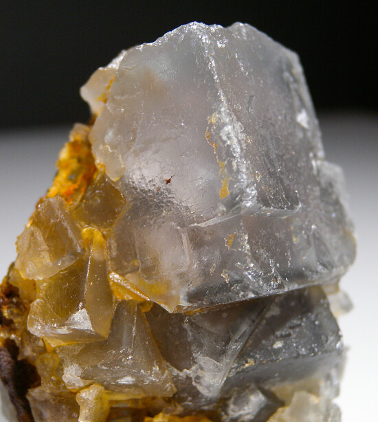 Translucent light purple cubic Fluorite crystals on matrix from the Surprise Mine in New Mexico. The Fluorite has stepped surface growths and good translucency. The main crystal is 3.2cm on the diagonal. This specimen was mined in 2014. A brief description of this find was presented in Tom Moore's report in the Jan/Feb 2015 issue of the Mineralogical Record. It doesn't have super bright color, but it a good sized crystal that displays well and it's translucent to transparent with faint color zoning.