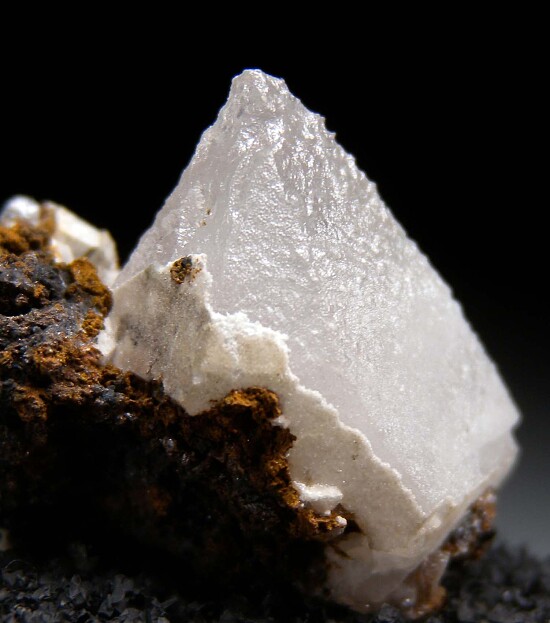 Sharply formed single white Anglesite from Tsumeb. The crystal is translucent to transparent with a slightly dimpled surface. Complete and undamaged on both sides.