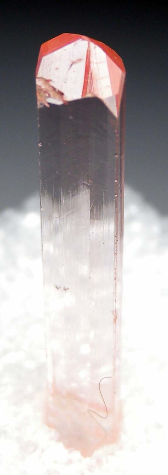 Transparent, flawless light pink Topaz crystal. Ewell's old label indicates this is from Afghanistan, however I'm only aware of small blue Topaz crystals associated with Lepidolite from Paprok, Afghanistan, and this looks much more like a Katlang Topaz to me. Undamaged.