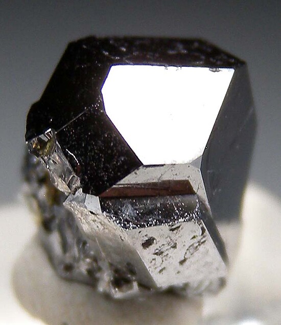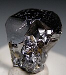 Highly lustrous metallic crystal of Sperrylite from the well known Talnakh deposit. A robust single crystal of this platinum species with bright luster and modified cubic form. Weighs 2.52 grams. Front, back, and both sides shown. Note that it appears dark in the photos due to it's bright, high metallic luster and is much more silvery in color in person.