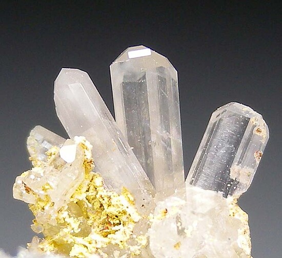Cluster of elongated, gemmy untwinned Cerussite crystals on matrix from the Dennis Ewell collection. Beautiful undamaged Cerussite crystals.