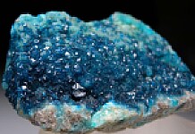 Deep blue crystals of Veszelyite on sky blue Hemimorphite. Rich coverage of Vezelyite crystals. Mined in 2022. The locality is a former Limestone quarry with Lead, Zinc, and Copper mineralization that closed in 2018.