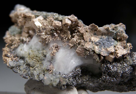 Silver crystals that have been exposed from white Calcite on a Safflorite matrix. Cubic Silver crystals are uncommon and these are superbly formed, sharp cubes of about 2mm in size. There are lots of good cubes all over.