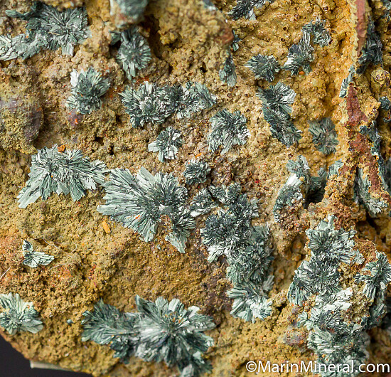 Sprays of green Koettigite on both sides of a vuggy limonite matrix. A much sought after rarity from Mapimi. Comes with an old AL McGuinness label.
