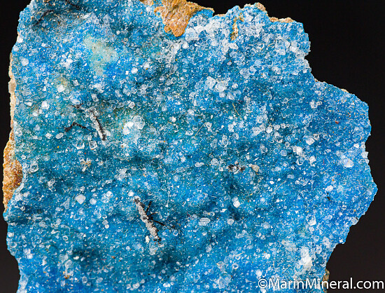 Blue Kinoite, a rare copper silicate mineral, with sparkly, colorless Apophyllite on matrix. A well known and popular rarity from the Christmas Mine. This is an especially rich example with lots of blue Kinoite present.