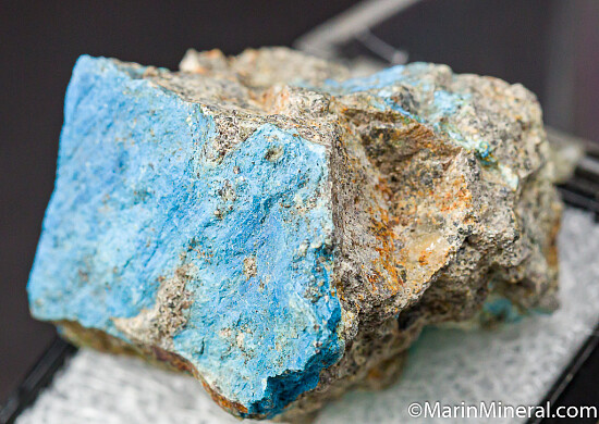 Blue Aerinite on matrix. Aerinite is a rare, chemically complex carbonate-bearing silicate.