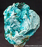 A matrix of solid Chrsocolla and Malachite with the surface covered by Chrysocolla psuedomorphs of at least 2 different minerals. One are platy, tabular crystals (possibly Barite?) and the other are acicular radial group of crystals. Near the top is a cluster of sharp, deep green 'primary' Malachite crystals. This is a great old piece for a Katanga psuedomorph collector that comes with an old Al McGuinness label. Valued at $400.