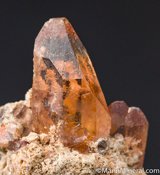 Transparent, upright crystals of Topaz on matrix. Undamaged specimen with excellent crystals. Ex. Chuck Trantham and comes mounted in a plastic display box. Good from all sides.