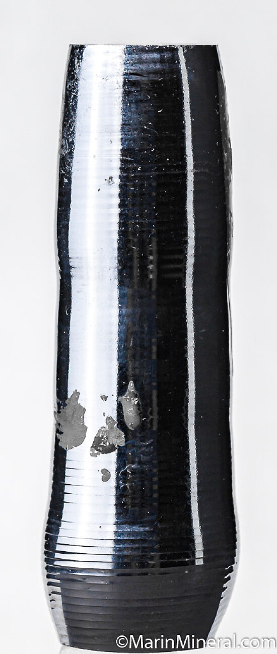 Cylindrical, lab-grown crystal of Silicon used for making silicon chips for electronics. These are grown in chip manufacturing plants in cities such as Sunnyvale and Cupertino which are located in what is called 'Silicon Valley' in the southwestern part of the San Francisco Bay area. Thin wafers are cut from these crystals, polished, and then made into chips. Mirror lustrous and brighter than photos indicate.