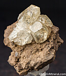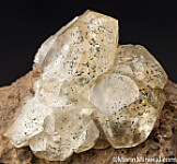Fine quality transparent yellow Calcite crystal with lots of golden metallic inclusions of Marcasite. Undamaged except for a cleave on one crystal on the lwer edge of the side of specimen. There is an old label from the Bill Hiss collection showing a price of $50, I value this at $150 now.