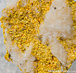 Relatively flat, round mass of Gold crystals in Quartz.