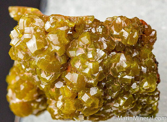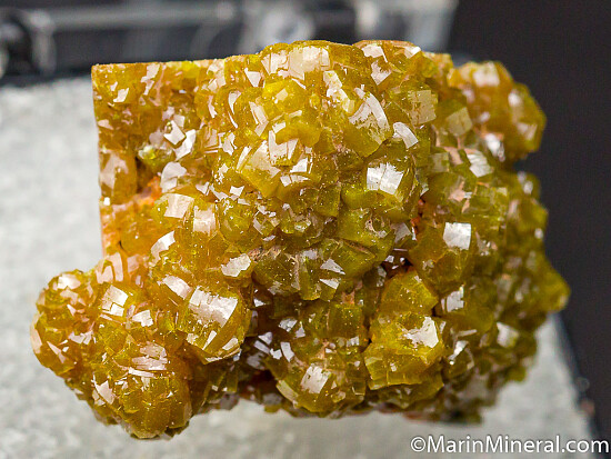 Undamaged mound of yellow/green Pyromorphite crystals from the classic Bunker Hill Mine.