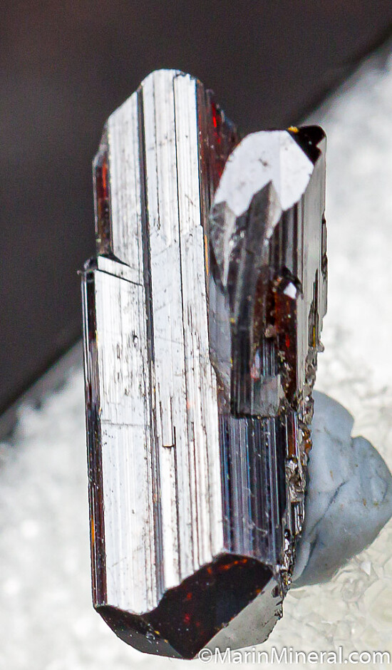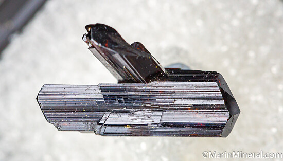Double-terminated Rutile crystal attached to another terminated Rutile crystal. Undamaged fine crystal. Ex. Chuck Trantham collection.