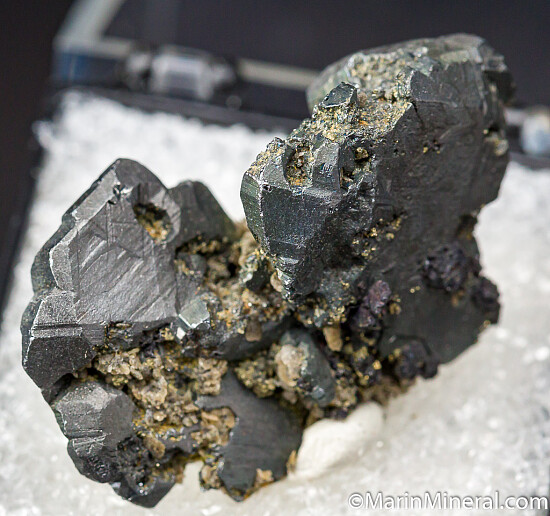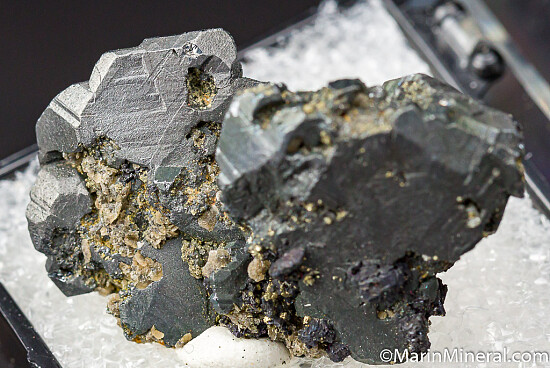 Well formed 2cm 'cogwheels' of Bournonite that sit up side by side perfectly for display, on a small amount of matrix with other associated minerals. This is from older finds at mine that has produced some of the world's finest Bournonites. Good from front and back.