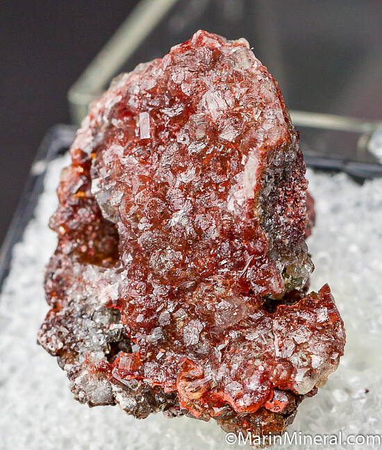 Dense coverage of sparkling Willemite crystals covering the top surface, with a vuggy area on the side with well formed individual Willemite crystals. Comes mounted in a Perky box. A note on the bottom of the Perky box dates the specimen to 1982 or earlier.