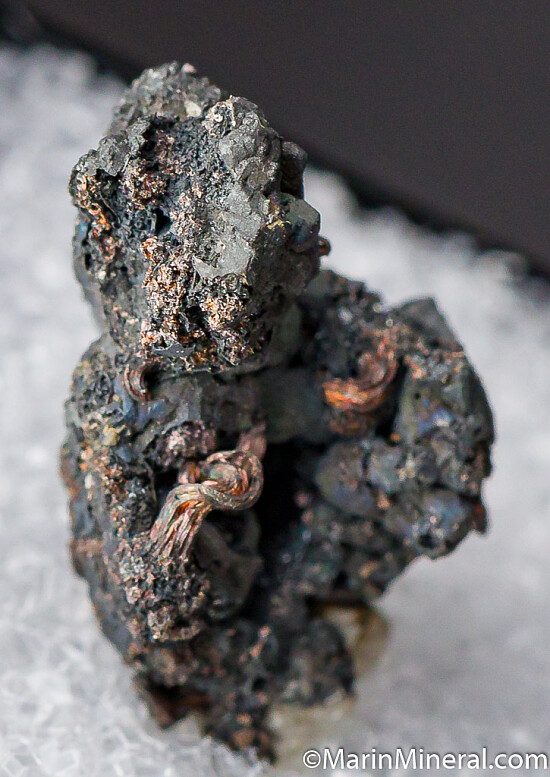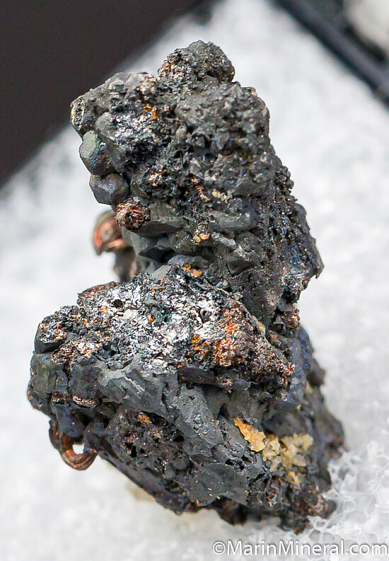 Argentite with protruding wires of Silver. The Silver wires are short but thick and curving.