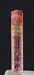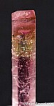 Single transparent pink Tourmaline crystal with a yellow zone near the top. Complete all around and undamaged with a bit of stepped growth on one side near the termination. Great crystal!! Weighs 2.04 grams.
