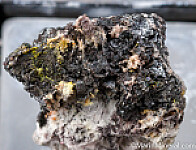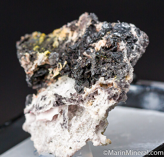 Platy grey crystals of Nagyagite, a rare lead gold tellurium antimony sulfide, that contrast well agains the white matrix. Hard to find thumbnail from the type locality for the species.