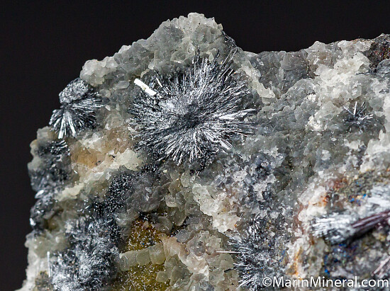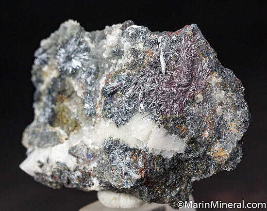 Radial sprays of acicular metallic red crystals of Kermesite. This historic Antimony mine was the classic source of many of the world's best Kermesite specimens prior to finds in China.