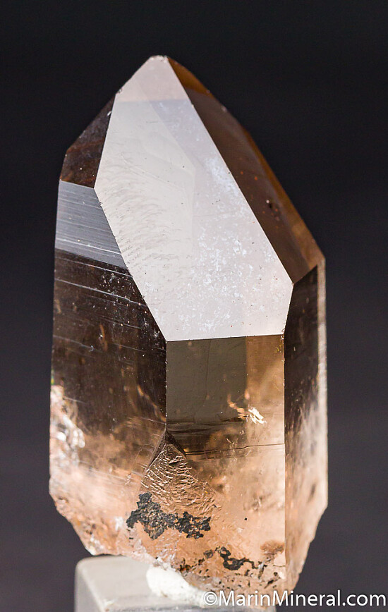 High quality, undamaged, transparent smokey Quartz crystal from Maine. Comes with an old Rochester Lapidary Supply Co. label.