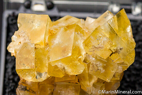 Transparent cubes of yellow Fluorite. Old material from the Chuck Trantham collection.