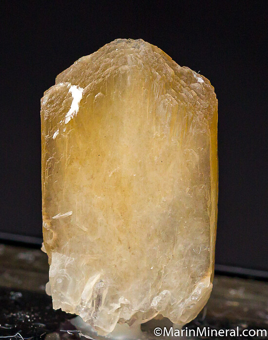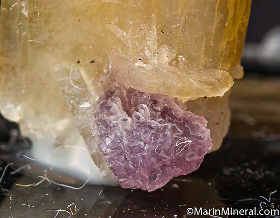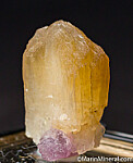 Large single Stilbite crystal with an attached purple Lepidolite crystal at the base. Clean and undamaged thumbnail that would be a great addtion to a Himalaya Mine suite.