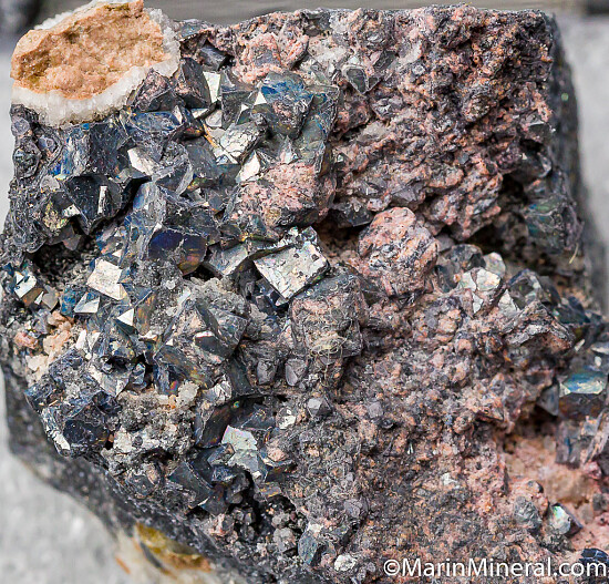 Well formed silvery metallic cubes of Skutterudite to 4mm on matrix. Ex. Chuck Trantham collection.