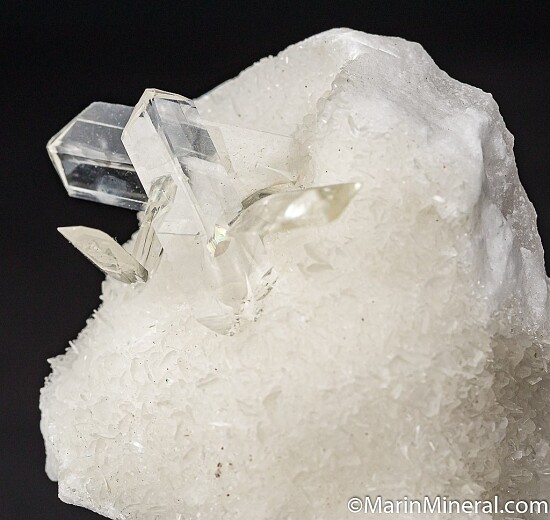 Water clear Selenite crystals on matrix. These always stun due to their perfect, pure look. Sawcut on back and base. Ex. Roberts Minerals specimen.