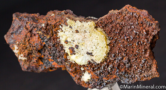 Yellow Austine on matrix, both sides showing crystals. A 3cm cluster on one side and a 4cm cluster on the other. Ex. Chuck Trantham collection with label