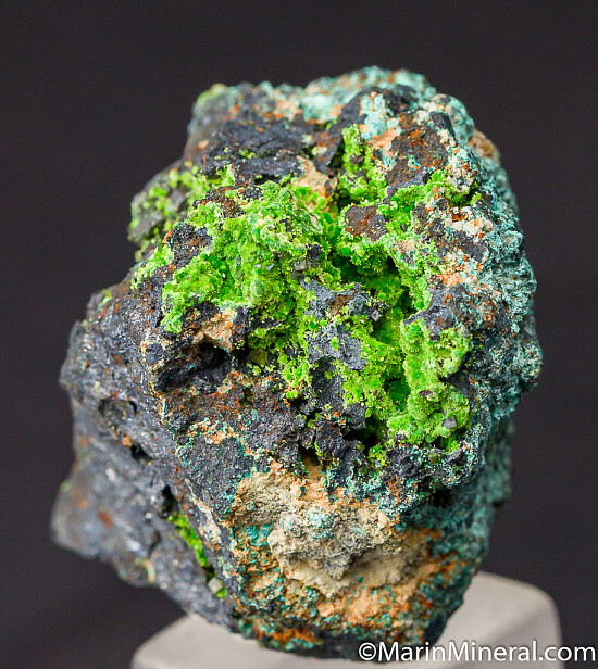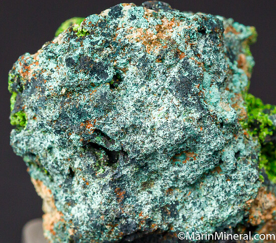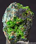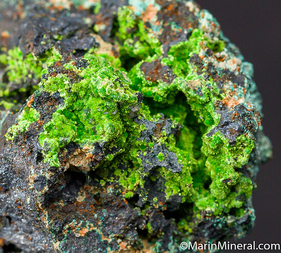 Vuggy matrix with two areas lined with bright moss green Arthurite.